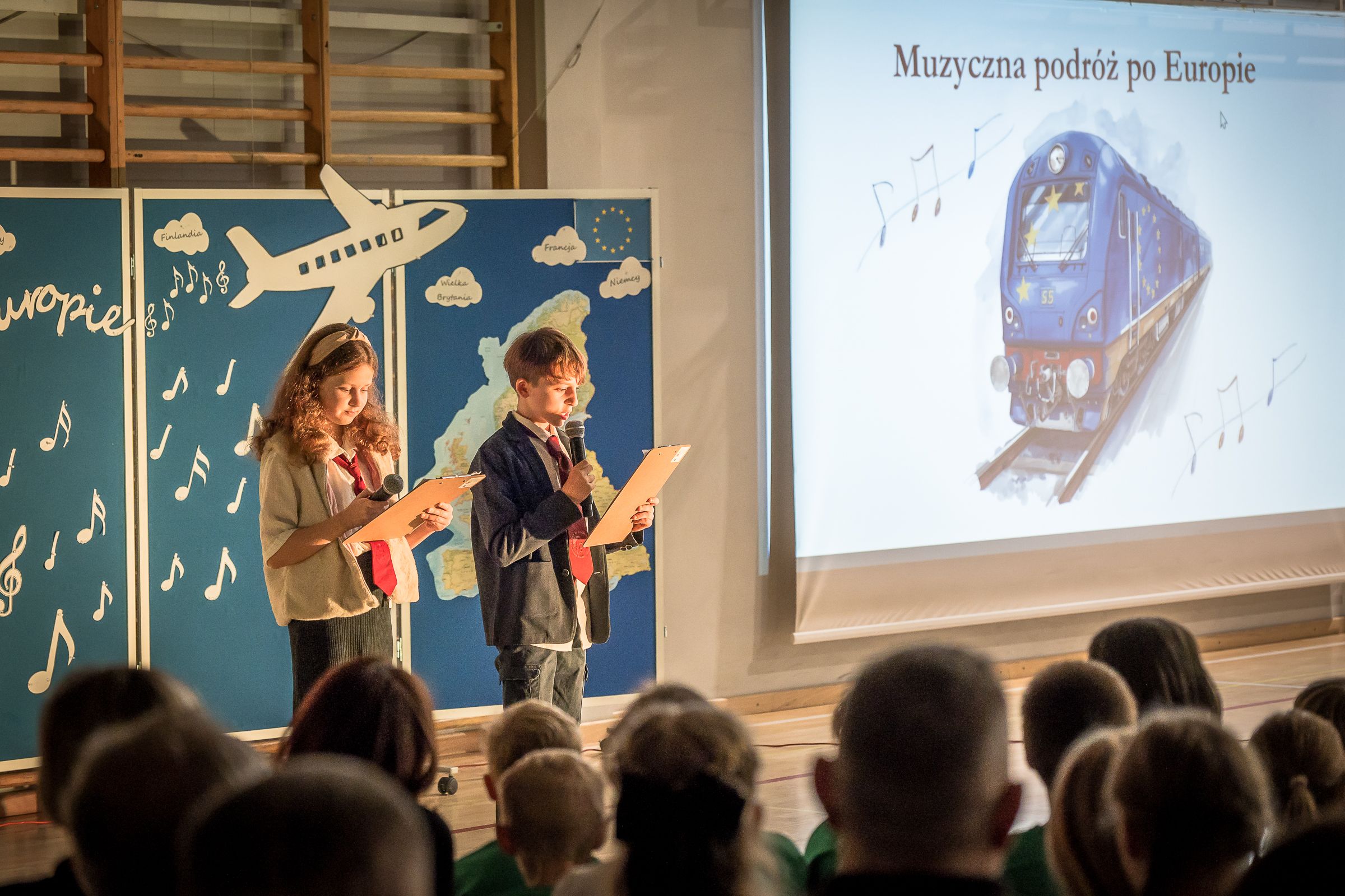 20 listopada nasza szkoła zamieniła się w scenę pełną barw, dźwięków i emocji. Dzięki występom muzycznym i tanecznym ponad stu uzdolnionych uczniów i uczennic zabraliśmy publiczność w niezwykłą podróż przez różne kraje Europy – od Polski, przez Czechy, Niemcy, Włochy, aż po Finlandię i Francję.