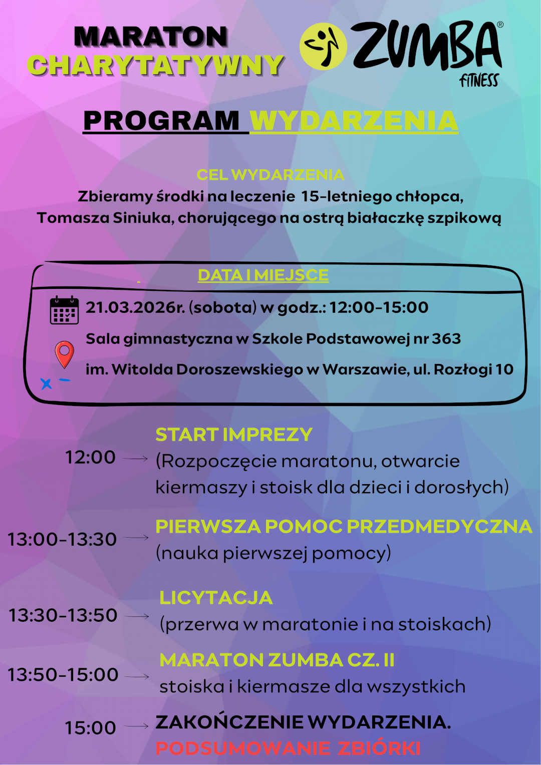 W sobotę 21 marca w naszej szkole odbędzie się akcja charytatywna: Zumbę tańczymy - o pomoc walczymy! start o godzinie 12.00.